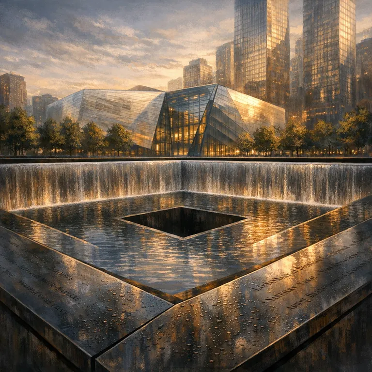 A tribute to the victims of the September 11 attacks, featuring museum exhibits and outdoor memorial pools.