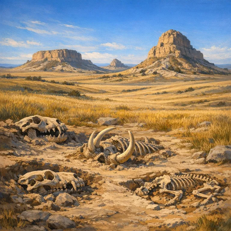 Notable for well-preserved Miocene-era mammal fossils and mixed-grass prairie ecosystems.
