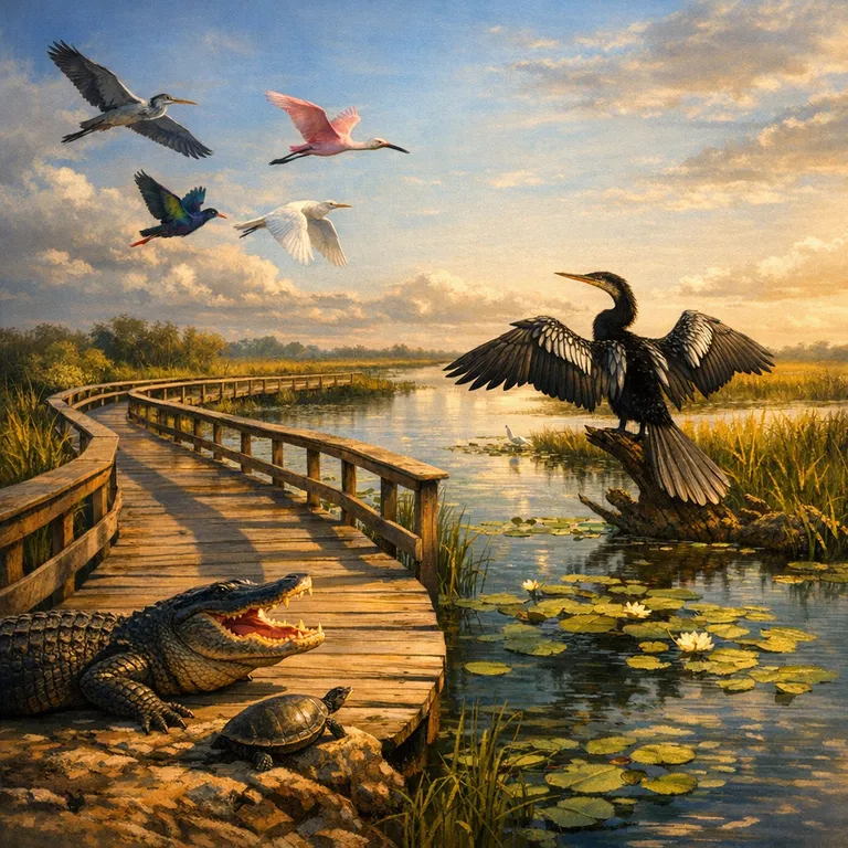 A popular boardwalk trail that provides excellent opportunities to see wildlife such as alligators, turtles, and a variety of birds in their natural habitats.