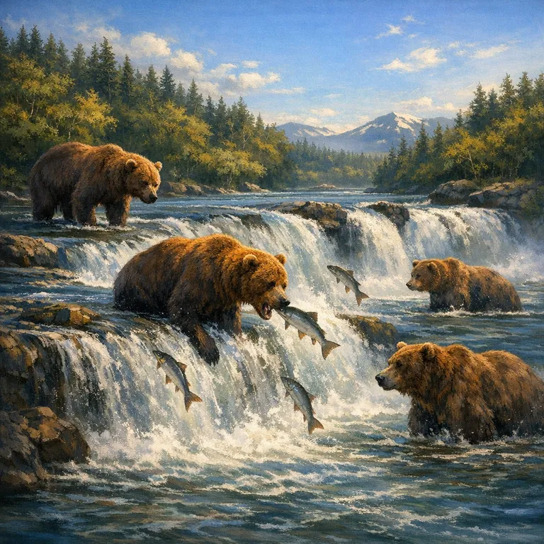 A popular bear-viewing area where brown bears can be seen catching salmon during the spawning season.