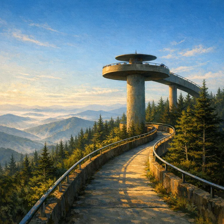 At 6,643 feet, Clingmans Dome is the highest point in Great Smoky Mountains National Park and offers a panoramic view of the mountains. Accessible by a steep, paved trail, this observation tower is a must-visit for breathtaking vistas.