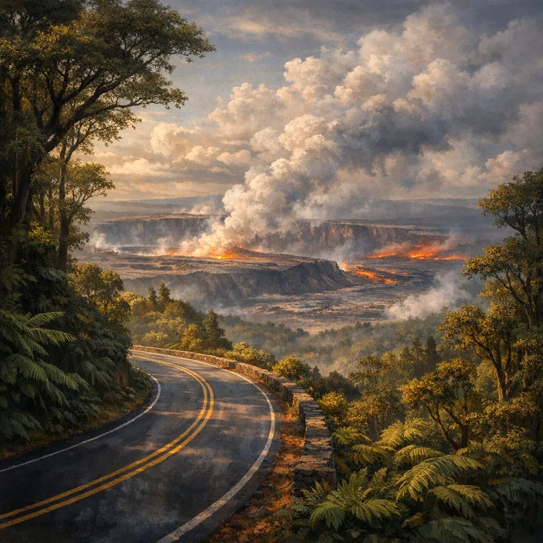 A scenic drive that circles the summit caldera of Kīlauea, offering access to various stops and viewpoints, including active volcanic sites and lush rainforest.
