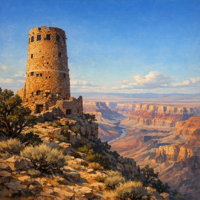A historic stone structure offering expansive views of the canyon and the Painted Desert, designed by architect Mary Colter.