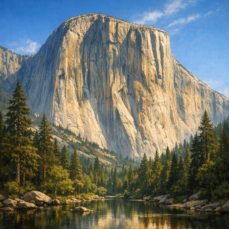 A vertical rock formation in Yosemite Valley, famous among climbers for its challenging sheer face.