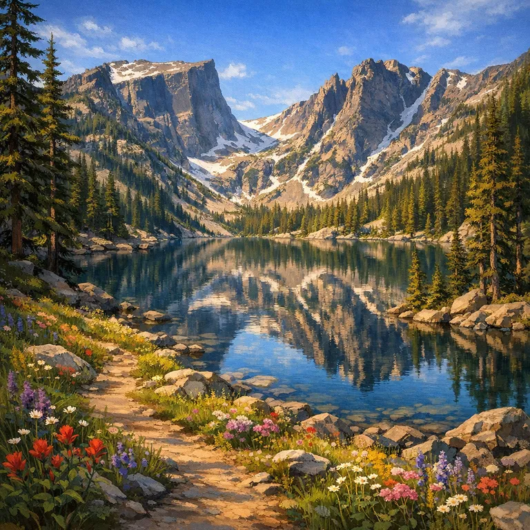A beautiful high-altitude lake accessible by a moderate hike, offering iconic views of Flattop Mountain and Hallett Peak.