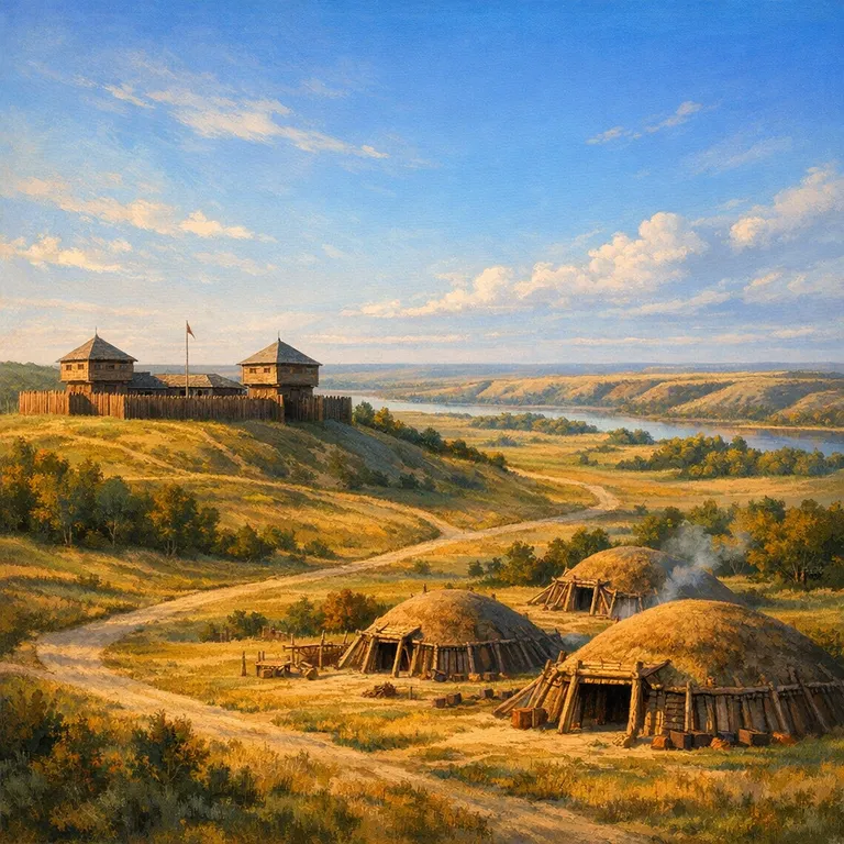Historic park offering tours of a reconstructed military fort and Native American earth lodges, along with hiking trails.