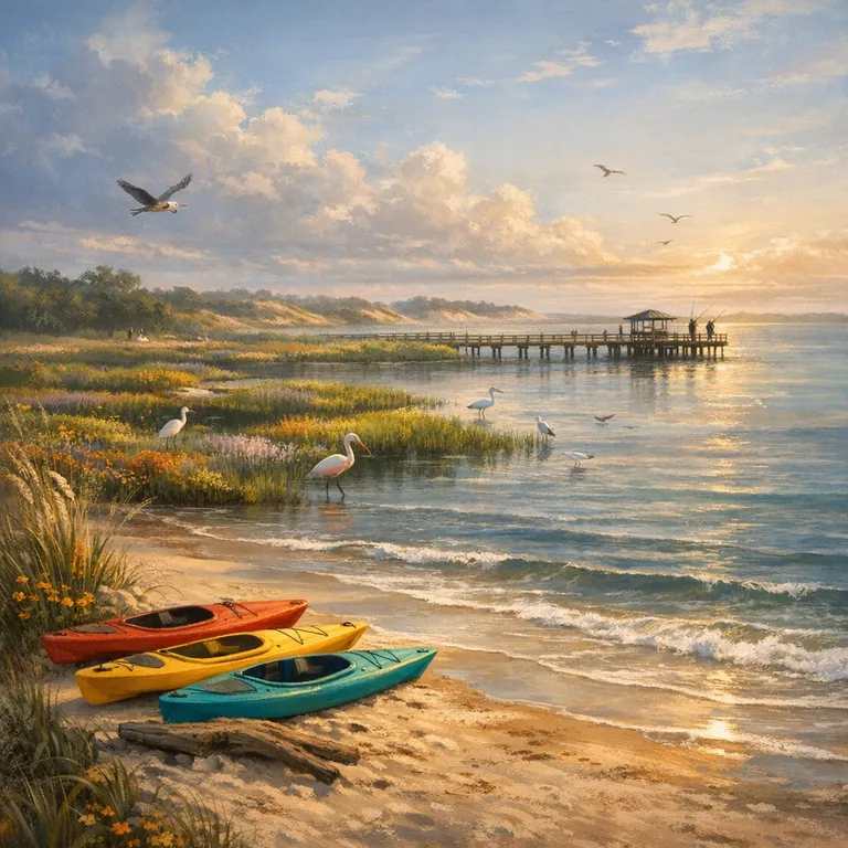 A state park offering outdoor activities such as camping, kayaking, fishing, bird watching, and hiking.