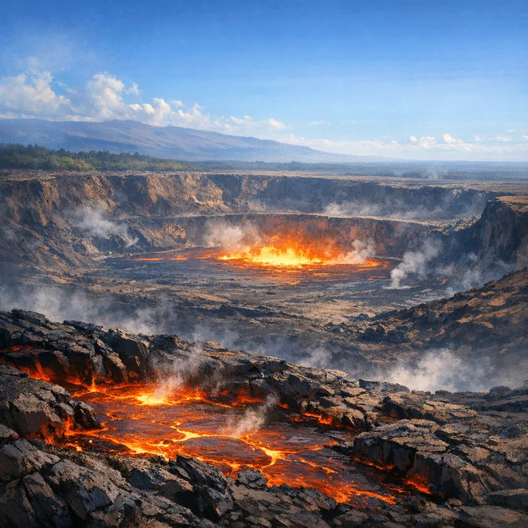 An active pit crater within the Kīlauea Caldera that is often home to a lava lake, offering spectacular viewing opportunities of live volcanic activity.
