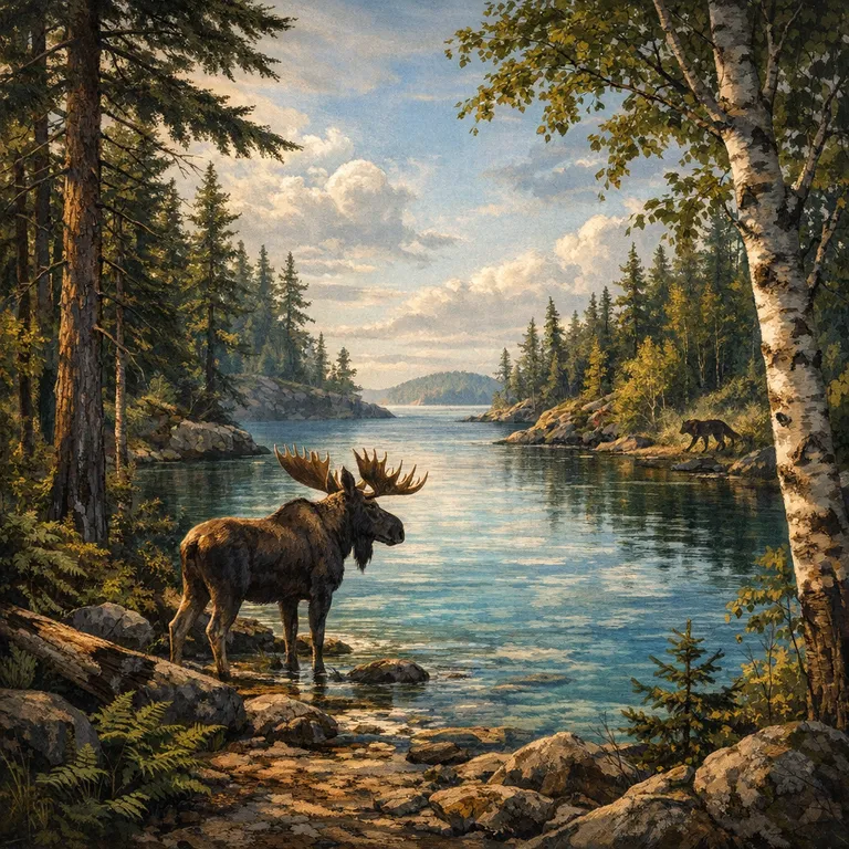 Remote island wilderness in Lake Superior, known for its wolf and moose populations.