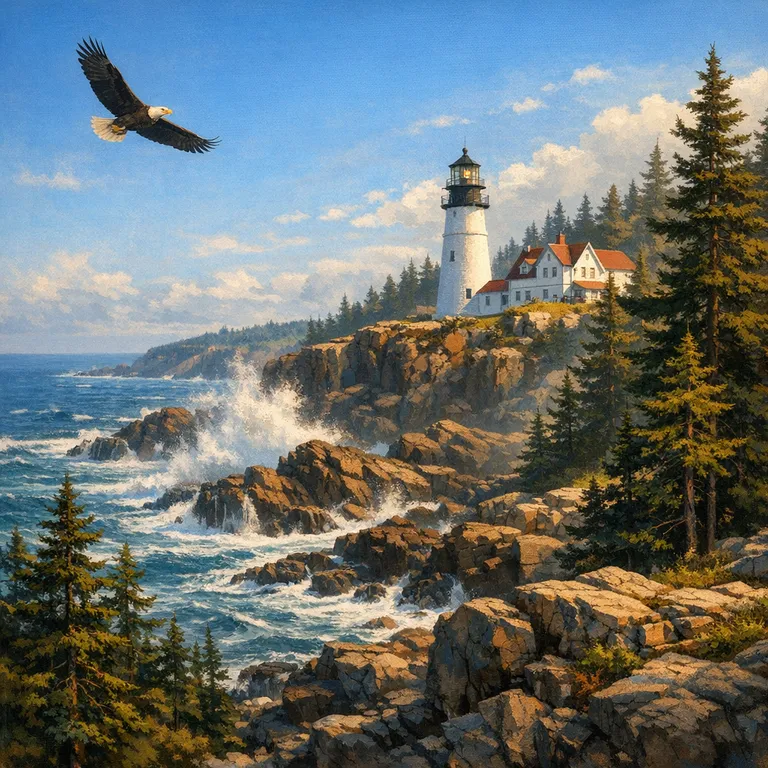 Lighthouses, lobsters, and rugged coasts.