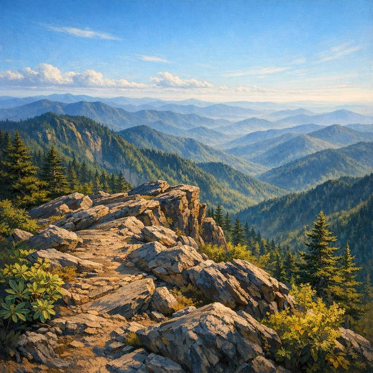One of the most revered peaks in the park, Mount LeConte provides challenging hikes with rewarding panoramic views. The summit can be reached by several trails including Alum Cave Trail, which showcases dramatic rock features and lush surroundings.