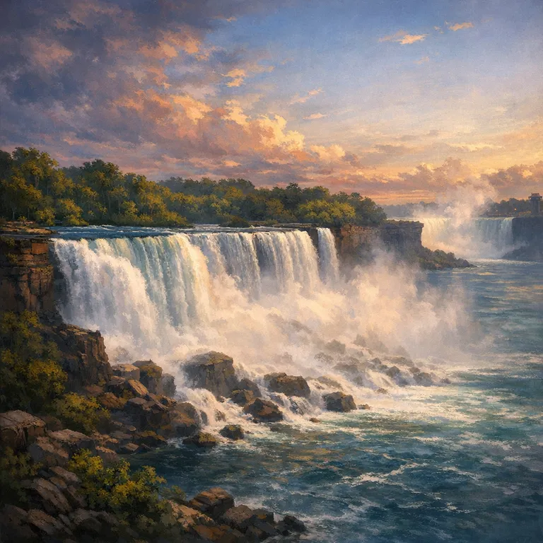 A stunning natural wonder featuring three waterfalls on the border between the United States and Canada.
