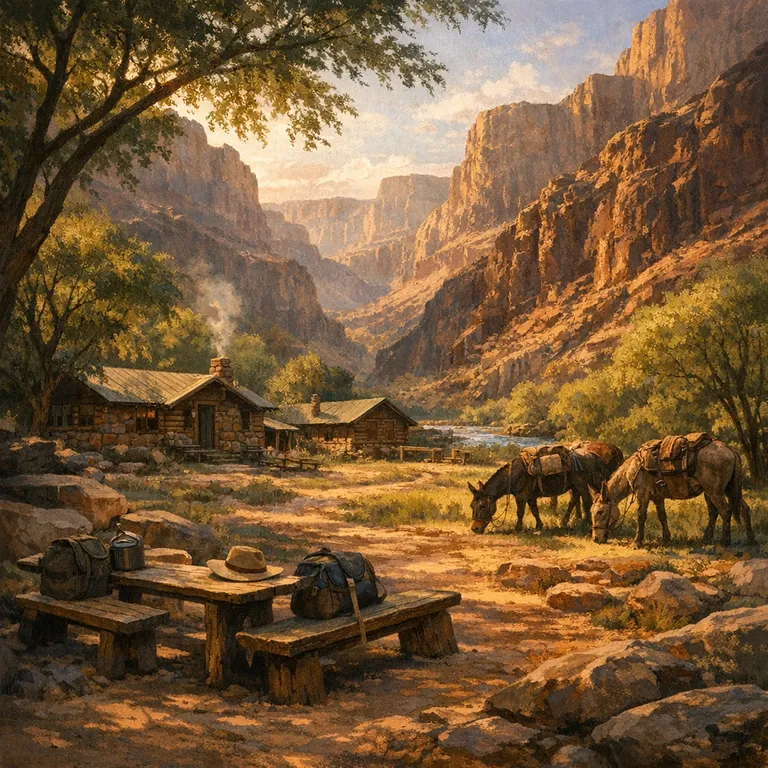 Situated at the bottom of the canyon, Phantom Ranch provides rustic accommodations and serves as a rest stop for hikers and mule riders.