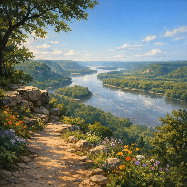 A scenic park offering breathtaking views of the Mississippi River and hiking trails.