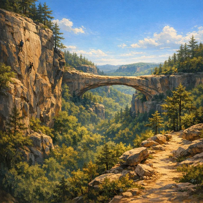 A canyon system known for natural stone arches and outdoor activities like rock climbing and hiking.