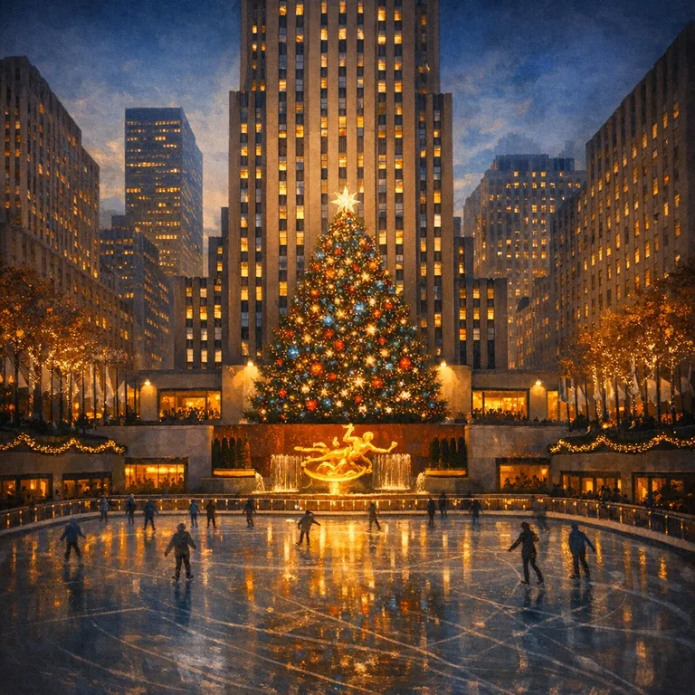 Famous complex known for its Art Deco architecture, ice skating rink, and annual Christmas tree lighting.