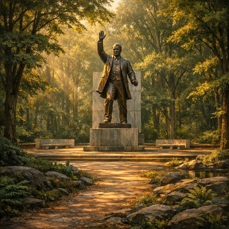 A wooded island sanctuary dedicated to the 26th President, featuring trails and a central plaza with a statue.