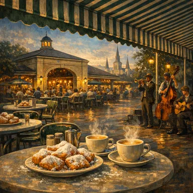 A legendary coffee shop known for its beignets and café au lait, located in the French Market.