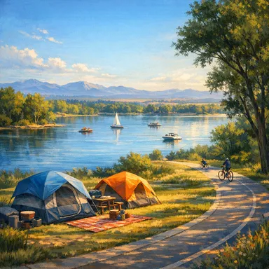 A large urban park with a reservoir offering camping, boating, swimming, and various outdoor activities.