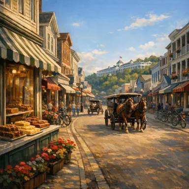 A unique island known for its historic sites, car-free streets, and famous fudge.