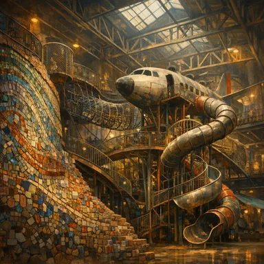 A quirky, immersive museum featuring unique, interactive exhibits made from repurposed architectural and industrial objects.