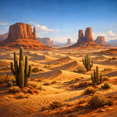 National parks showcasing arid beauty, dramatic rock formations, and cactus-filled vistas.
