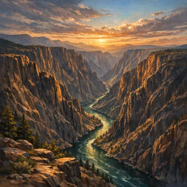Showcases steep, dark canyon walls carved by the Gunnison River.