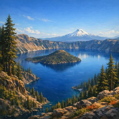 Features the deepest lake in the U.S., formed within the remains of an ancient volcano.