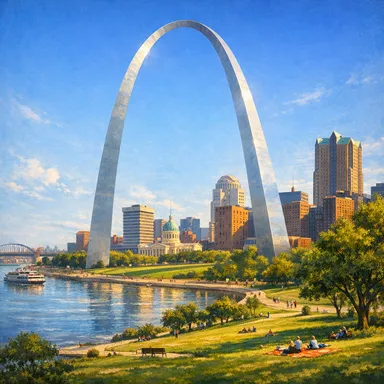Features the iconic 630-foot Gateway Arch, symbolizing westward expansion.