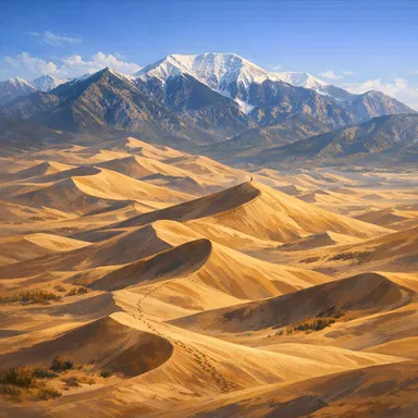 Contains the tallest sand dunes in North America, set against the Sangre de Cristo Mountains.