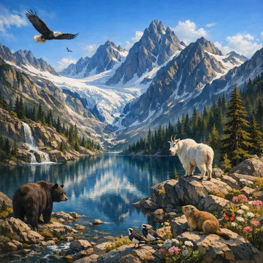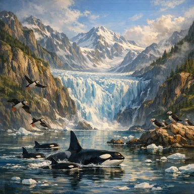 Features glaciers, coastal fjords, and abundant marine wildlife.