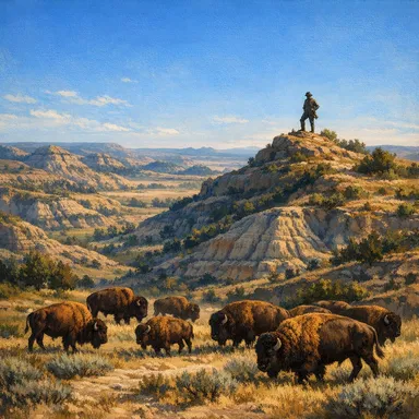 Badlands landscape rich with history, wildlife, and ties to President Theodore Roosevelt.