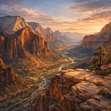 Features steep red cliffs, narrow canyons, and scenic hikes like Angels Landing.