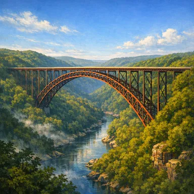 One of the most iconic landmarks in West Virginia, this steel arch bridge spans the New River Gorge and offers stunning views of the surrounding area. It's the longest steel span bridge in the Western Hemisphere.