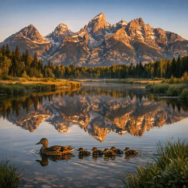 A serene spot with picturesque reflections of the Teton Range in the Snake River, ideal for photography, wildlife viewing, and enjoying sunrise views.