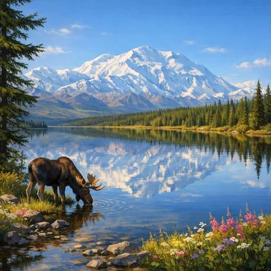 A stunning, reflective lake offering magnificent views of Denali and excellent opportunities for photography and wildlife observation.