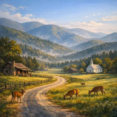 A verdant valley surrounded by mountains, Cades Cove is known for its beautiful scenery, wildlife viewing, and historic sites. Visitors can enjoy an 11-mile one-way loop road that provides access to trailheads, churches, and log cabins from the early European settlers.
