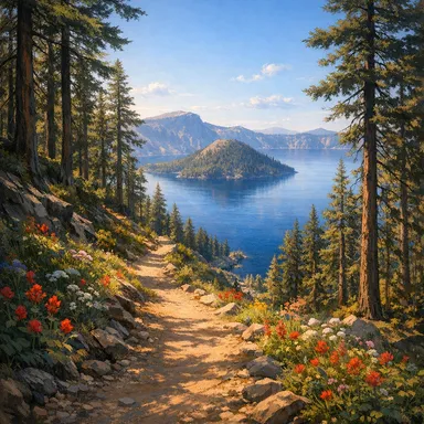 The only trail that leads down to the shoreline of Crater Lake, where visitors can swim, fish, or take boat tours to Wizard Island.