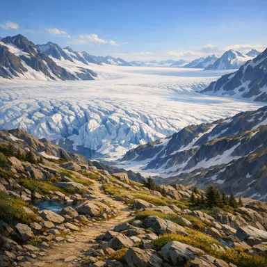 The source of at least 38 glaciers, offering dramatic landscapes and an 8.2-mile challenging hike.