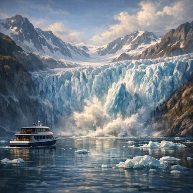 A tidewater glacier accessible via boat tours, known for impressive ice calving into the bay.