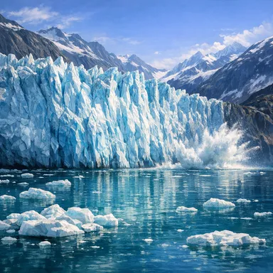 A stunning tidewater glacier known for its dramatic calving events, where chunks of ice break off and crash into the sea.