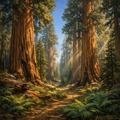 A sequoia grove housing over 500 giant sequoias, including some of the largest and oldest trees in the world.