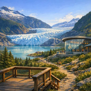 A stunning 13-mile-long glacier located near Juneau, offering hiking trails and a visitor center with educational exhibits.