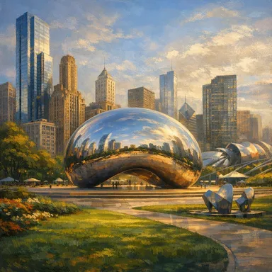 A large public park known for its modern art, architecture, and the famous “Cloud Gate” sculpture.