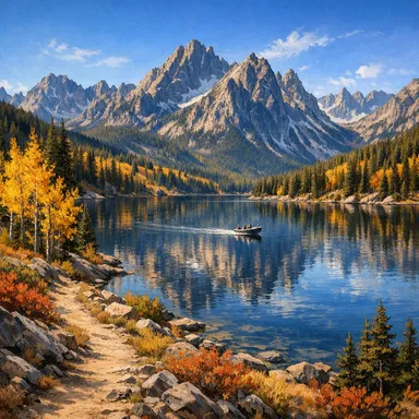 A renowned outdoor recreation area offering hiking, boating, and scenic views in the Sawtooth Mountains.